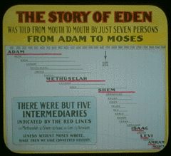 THE ABYDOS TABLET fully agrees with Genesis and is often corroborated by the Greek and Egyptian historians, Herodotus and Manetho. It shows Adam as the first Pharaoh, and Noah the twentieth, while the intermediate eighteen correspond with Genesis with remarkable accuracy. Mena's wife was Shesh--Hebrew, Isha--woman. Her first son was Pharaoh II.--Greek, Teta-Khent--guilty one; Hebrew, Kanighi; Latin, Athos; English, Cain. The tablet for Abel represents him as the non-resistant one. THE ABYDOS TABLET shows the same order as Moses (Genesis 4-6), giving first the line of Cain down to Jabal, who was Kakan. At that time, evidently, the gods and demigods began to fill the Earth with violence. Seti's list omits the names of these. All demigods were destroyed in the Deluge. Noah is next in order with a regal title. But since he was not of Cain's family, THE ABYDOS TABLET there goes back, mentions Abel and Seth, and Seth's line just as given in Genesis (untitled), down to Noah. These all, as Pharaohs, have their royal ovals, but no supertitle. After Noah (Nofru), Pharaoh XX., the line runs through his son Ham (Chamu Chufu). Appropriately Noah's other sons are ignored; for Shem and Japheth went to Asia and Europe, while only Ham went to Egypt. Thus wonderfully is the Bible being vindicated by the very inscriptions once supposed to contradict it. Moses was "learned in all the wisdom of the Egyptians." Besides this, he was Jehovah's Prophet, and so certified by Jesus. Although Moses lived two thousand years after Adam, history connected up very close to his time, see diagram. Lines drawn to scale, showing overlapping of Adam's 930 years, Methuselah's 969, Shem's 600, Isaac's 180, Levi's 137, Amram's 137 and Moses' 120. The overlapping periods were respectively 243 years, 68 years, 50 years, 40 years, 58 years and 31 years. Years after the Deluge, the world began to be populous. The narrative handed down by Noah and his sons was more or less forgotten, and the bow of promise lost much of its significance. Losing confidence in God, the people began the construction of the Tower of Babel, which was to save them in spite of God from any flood of waters of the future. Alas, how short-sighted, like others who possess much worldly wisdom! The Scriptures deprecate such lack of faith among Christians, and attempts to protect themselves and their earthly interests, leaving God and His Plan out of their calculations. Some today ignore God after this manner, saying, Trust not in the Lord for the things promised. If you wait for God to do for you, nothing will ever be done. In other words, we are living in a day when faith in the Divine will and in the Divine Plan and promises seems to be on the wane. God settled the matter by confounding the language and scattering the people so that they could not co-operate in further foolish undertakings. The Bible refers to this, saying, "He hath determined the times before appointed, and the bounds of their habitation; that they should seek the Lord, if haply they might feel after Him, and find Him." The diversity of languages is one of the most remarkable things in the world--an effectual barrier to prevent mankind from combining for the accomplishment of their own purposes, selfish or sinful. It has delayed the great Day of Wrath. Now the language barriers are breaking down, and we find the tendency of humanity to re-unite. Unions and Trusts are being built by the Rich and the Poor--each for self-protection. The rule of kings and princes is threatened by the growth of common language and intelligence in the masses. Had these barriers been removed two thousand years ago, similar results would have come too soon, according to the divine purpose which is shaping Earth's affairs in preparation for Messiah's Kingdom, which will bless the entire human family. Abraham became the friend of God by his manifestation of faith, when in response to God's invitation he left his own country and wandered in Canaan. By this obedience he became heir of the Promise, "In thee and in thy Seed shall all the families of the Earth be blessed." St. Paul explains (Galatians 4:23,24.) that Abraham's wife represented this Covenant, or Promise. Sarah's barrenness corresponded to the long-deferred coming of Christ in fulfilment of the Promise. Isaac typified Messiah, the Heir of the Promise. Isaac's bride, Rebecca, typified the Elect Church, the Bride of Christ and His joint-heir in the Promise. St. Paul says that Hagar typified the Law Covenant made with Israel at Mt. Sinai, and that the nation of Israel was typified in Ishmael. (Galatians 4:25.) As Hagar and Ishmael were cast off when Isaac was born, and had almost perished, so the Jewish people have been cast off from Divine favor for eighteen centuries, and today are nearly famished. As the angel of God pointed to the fountain of water, and Ishmael was revived, so God's message now is pointing the Jews to a spring of water; their Zionistic hopes are reviving. The sacrifice of Isaac typified the sacrifice of Christ, necessary in order for Him to become the Spiritual Seed of Abraham with power to bless the world. The servant sent to call Rebecca, the bride of Isaac, is beautifully explained to represent the work of the Holy Spirit in calling the Church to become the Bride of Christ and His associate in the great work of blessing Israel and all the families of the Earth.--Acts 3:19-26. Rebecca's return with Eliezer represents the Church's journey during this Gospel Age to meet Christ, the Bridegroom who will receive her at His Second Advent. Abraham typified Jehovah God, through whose promise the blessing of all the families of Earth will come. This promise has been the hope of Israel for thirty-five centuries.--Galatians 3:29. The Sodomites possessed a very rich valley and comparatively avoided that feature of the curse declaring that bread must be won by sweat of face. These conditions were conducive to the selfishness and sin which the Bible charg