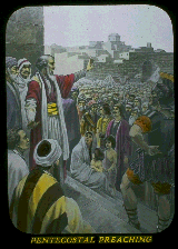 Pentecost, the fiftieth day, was the Jubilee day, as the fiftieth year was the Jubilee year. The fiftieth day followed a Sabbath Day cycle (7x7=49), as the Jubilee year followed a Sabbath Year cycle (7x7=49). As the antitype of the Jubilee Year will usher the world into the glorious rest in Messiah's Kingdom and in the New Covenant relationship with God, so the antitype of the Jubilee day ushered believers into a rest of faith at Pentecost. So St. Paul explains, "We who believe do enter into rest." All truly Christ's are enabled to keep a Sabbath rest of faith and trust all the time, not merely on the Seventh Day, or on the First Day. Every day to them is a rest by faith in Christ's sacrifice--a Sabbath to the soul--foreshadow of Heavenly Rest. None could enter into this true Sabbath rest, until Jesus had opened the way. His death was necessary as man's Ransom price. His resurrection was necessary to enable Him to apply that price on our behalf. He ascended on High, there to appear in the presence of God as the Advocate for His disciples. He imputes His merit to cover their imperfections, and to make their sacrifice acceptable to God, that they may suffer with Him and be glorified with Him. For the faithful there remaineth a rest, still more complete--to be attained in their resurrection "change."--Hebrews 4:3, 9, 11. Under Jesus' direction, the Apostles, His followers, were not to begin their work until they received the Pentecostal blessing--the Holy Spirit--the evidence of their acceptance as sons of God. The only thing they did during that time before their own acceptance, was the choosing of a successor for Judas' place; but evidently God never recognized their choice. In His own due time God brought forth St. Paul to be the twelfth Apostle--one of the twelve foundation stones of the New Jerusalem. (Revelation 21:14.) The error of supposing Apostolic Succession in the Church's bishops was a costly one. It led to many grievous errors.