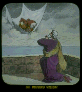 God's Covenant with Abraham gave assurance that all the blessings God purposed for mankind would come to them through his posterity. The Jews were the natural seed of Abraham, and properly to them belonged the promises. But when all Jews possessed of the faith of Abraham had been privileged to come in with Jesus and become His joint-heirs in the Messianic Kingdom, then God through St. Peter used the second Key to the Kingdom. He threw open the door of opportunity to the Gentiles, that they might become fellow-heirs with the Jews in the Messianic Kingdom. Three and a half years after Pentecost the angel of the Lord appeared to Cornelius. He told him that now God was ready to accept his prayers and his devotion. He told him to send for St. Peter at Joppa. From him he would hear "words" necessary to be believed in order that he might be fully accepted of God and receive the Holy Spirit. Three messengers were sent to fetch St. Peter. Meantime God prepared the Apostle. He was told that what God had cleansed he should not consider any longer unclean. St. Peter associated his dream with his visitors, and promptly went to Cornelius' home. He found Cornelius and his family devout and ready to hear. He proceeded to tell them the true story of Jesus: His death, His resurrection, the call of the Church to be His Bride class--proving their worthiness by loyalty and faithfulness even unto death. While St. Peter was speaking, these consecrated people, drinking in the Message, fully accepted the terms of discipleship. Then God gave a manifestation of His acceptance of them by the gift of the Spirit, such as was common to all Christians at the beginning of this Age. St. Peter, astonished, then said, If these have received the Holy Spirit, who can forbid them water baptism, which is only a symbol of their consecration to be dead with Christ? Here Gentiles first began to be grafted into the "Olive Tree" of Romans 11:17.