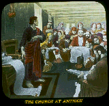 Gradually the Gospel Message found hearing ears amongst the Gentiles, but fewer in number. The Law training of the Jews had been God's special blessing to them, preparing some of them for the Gospel. The first Church in which Gentiles seemed to predominate in numbers was at Antioch. Barnabas, Silas and others were prominent amongst the brethren there, and later St. Paul. It was at Antioch that the followers of Jesus were first called Christians. Many Christians wish that no other name had ever been accepted. The Antioch Church, according to the Bible record, had very simple arrangements, similar to those practiced by Jesus and the Apostles. Forms and ceremonies had not yet entered, to crowd out the simplicity of Christ with mere forms of godliness. They met for growth in grace, knowledge, love and to assist each other in the narrow way. When fairly under way in their studies, they partook of the missionary spirit, and authorized and financed a mission which was conducted by St. Paul and Barnabas. Other missions were also conducted, as recorded in the Book of Acts.--Acts 13:1-5. Not long after this, the terrible persecutions of Nero and Diocletian came upon the Church. These Roman Emperors found diversion and relief from ennui in the horrible tortures they inflicted upon the inoffensive followers of Jesus, whose mission in the world is merely to "do good to all men as they have opportunity, especially to the household of faith," and to prepare themselves and each other for association with their Redeemer in the coming Kingdom.--Galatians 6:10. Why did God permit persecutions? The answer is that testings of faith and loyalty to God are as necessary to Jesus' followers as they were to Himself, and for the same reason-- to develop and crystallize character. These corresponded to Jesus' own persecution and crucifixion. Thus He explained, saying, "It was necessary that The Son of Man should suffer and enter into His glory." The Elect walk in His steps.